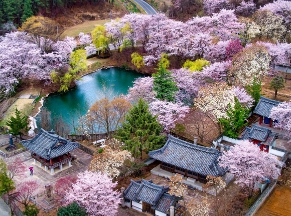 ▲덕천서원(거창)= 거창읍 장팔리 골짜기에 위치한 덕천서원은 거창의 벚꽃명소다. 봄이 오면 서원 고택 마당마다 목련이 하얀 수를 놓고, 벚꽃잔치가 벌어진다. 호수를 끼고 천천히 산책하며 둘러보면 벚꽃에 둘러싸인 서원이 마치 한 폭의 그림같이 호수에 비친다. 봄날의 덕천서원에서는 어디서나 인생사진을 얻을 수 있다.