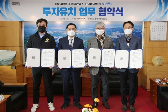 경남 창원시는 28일 오전 11시 접견실에서 ㈜부국정밀, ㈜씨티엔에스, 은우하이텍(주) 등 3개사와 투자금액 283억 원, 신규고용 130명 규모의 투자협약을 체결했다.