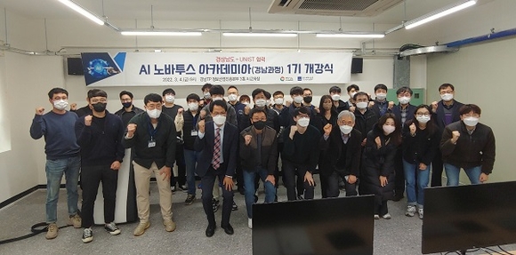 AI 노바투스 아카데미아 경남과정은 경남도와 울산과학기술원(UNIST)이 협력해 추진하는 AI 활용 전문인력 양성과정으로, 이날 개강식에는 경남지역 산업체 재직자 중 선발한 1기 교육생 30명이 참석했다.