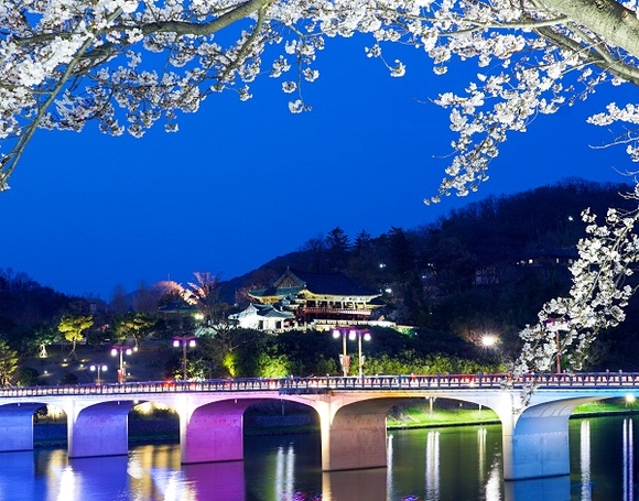 더욱이 강 건너로 보이는 삼문 벚꽃길의 벚꽃까지 원경과 근경을 한번에 다 즐길 수 있어 벚꽃에 제대로 취하기 좋은 명소다.