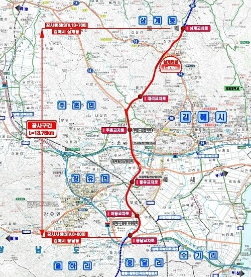 이와 함께 김해시는 국도58호선 주촌~삼계 구간 연말 개통에 맞춰 북부동 시가지에서 생림면 방면 국도58호선으로 진출하는 북부 우회도로도 연말 개통을 서둘러 생림 방면 출퇴근 시간 단축과 삼계사거리 교통체증 완화가 예상된다.