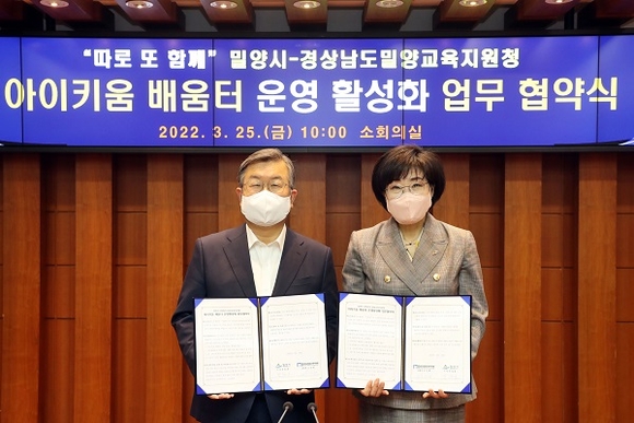 경남 밀양시는 25일 밀양교육지원청과 밀양형 아이키움 배움터 운영 활성화를 위한 업무협약(MOU)을 체결했다.
