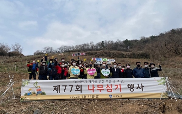 경남 김해시는 봄철 나무심기 홍보기간을 맞아 25일 한림면 무지개고등학교 뒷산에서 제77회 나무심기 행사를 가졌다.
