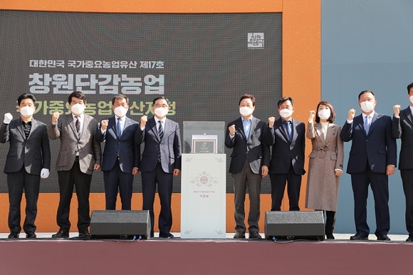 국가중요농업유산이란 농업인이 해당 지역에서 환경·사회·풍습 등에 적응하면서 오랫동안 형성시켜 온 유형·무형의 농업자원 중 보전하고 전승할 만한 가치가 있는 것을 국가에서 지정하고 있으며, 자치보전과 홍보 등을 위한 사업비 15억원과 FAO세계중요농업유산 신청자격이 부여된다. 2013년부터 지금까지 16개소가 지정됐고, 창원단감농업은 `19년부터 `21년까지 총 3차례에 걸쳐 포기하지 않고 도전한 끝에 제17호 국가중요농업유산으로 지정됐다.