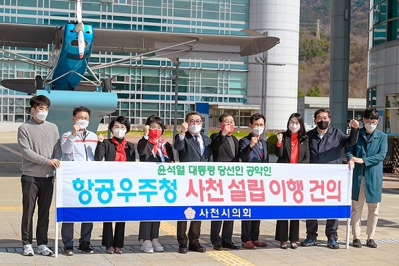 사천시의원들이 윤석열 대통령 당선인의 '항공우주청 사천 설립' 공약 이행을 촉구했다.