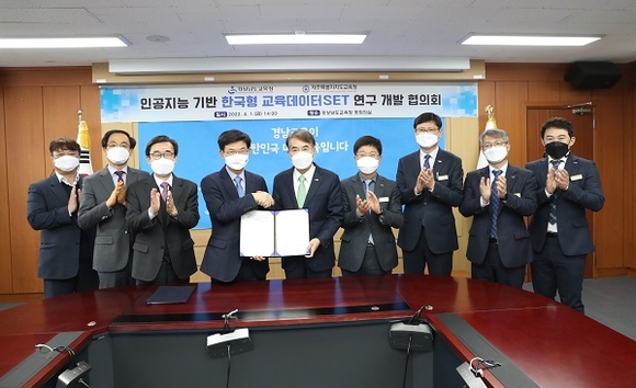 경남도교육청과 제주특별자치도교육청은 1일 경남교육청 중회의실에서 빅데이터·인공지능 플랫폼 아이톡톡 성과를 바탕으로 '인공지능 기반 한국형 교육 데이터 세트'를 구축하기 위한 업무협약식을 열었다.