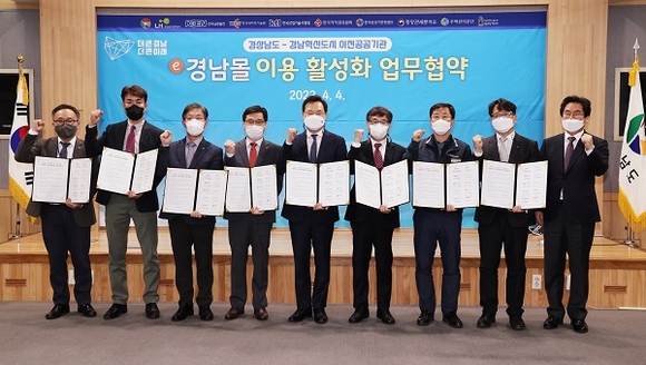 경남도는 지난 4일 도청 서부청사에서 경남혁신도시 공공기관, 노동조합협의회와 e경남몰 이용 활성화를 위한 업무협약을 체결했다.