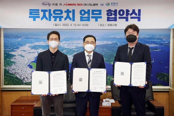 경남 창원시는 13일 오후 2시 접견실에서 ㈜컬리, ㈜이노필텍 2개사와 투자금액 760억원, 신규고용 810명 규모의 투자협약을 체결했다.