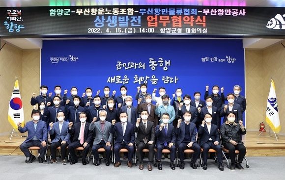경남 함양군은 15일 오후 군청 대회의실에서 부산항운노동조합, 부산항만물류협회, 부산항만공사(BPA) 등 부산항 노사정과 상생발전을 위한 업무협약을 체결했다.