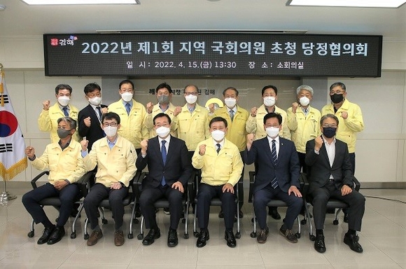 경남 김해시는 15일 시청 소회의실에서 민홍철(김해갑), 김정호(김해을) 국회의원이 참석한 가운데 주요 지역 현안을 논의하고 내년 국비 확보를 위한 당정협의회를 가졌다.