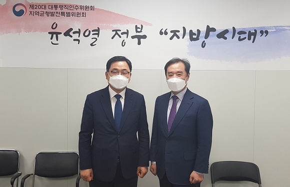 허성무 시장은 19일 대통령직 인수위원회 김병준 지역균형발전특별위원장과 면담을 갖고 윤석열 대통령 당선인의 창원지역 17개 공약과제와 지역 핵심 현안을 새 정부의 국정과제로 반영해 줄 것을 건의했다.