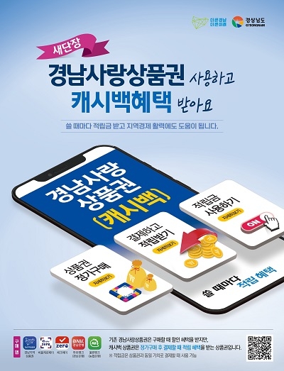 도 관계자는 “경남사랑상품권이 캐시백형으로 발행되면 빠른 소비가 가능하고, 소상공인 지원 효과도 더욱 커져 지역경제 활성화에 큰 도움이 될 것으로 기대한다”고 말했다.