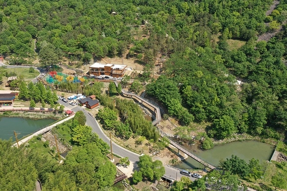 이번에 1단계로 개장하는 산림레포츠 시설은 나무구조물과 숲을 이용해 그물을 배치한 놀이시설 '네트어드벤처', 곡선 파이프라인을 따라 하강하는 모험 체험시설 '곡선형 짚와이어', 숲의 정취를 보다 가까이 즐길 수 있도록 데크로 조성된 '하늘 숲길'이다.