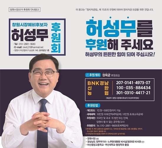 자세한 문의는 허성무 후보 선거사무소로 하면 된다.