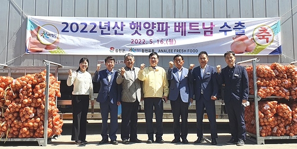 경남 합천군은 지난 16일 합천유통에서 2022년산 조생종 햇양파 베트남 수출 선적식을 갖고 본격적인 올해 양파 수출의 첫단추를 꿰었다.