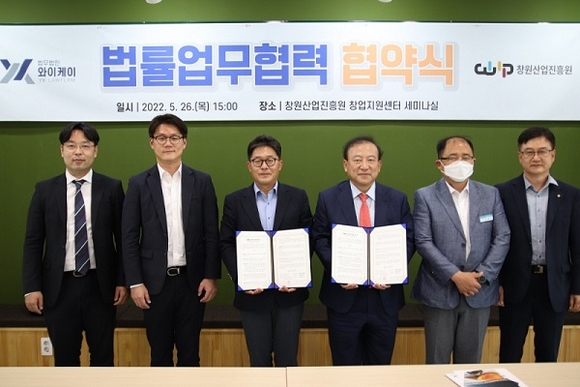창원산업진흥원은 지난 26일 창업지원센터 세미나실에서 법무법인YK와 상호 우호증진과 법률업무 협력을 위한 MOU를 체결했다.