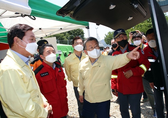 박 시장은 2일 당선 소식과 동시에 업무에 복귀해 박완수 경남도지사 당선인, 하병필 권한대행 등과 함께 부북면 산불현장을 찾아 점검을 가진 뒤 자원봉사자와 근무자들을 격려했다.