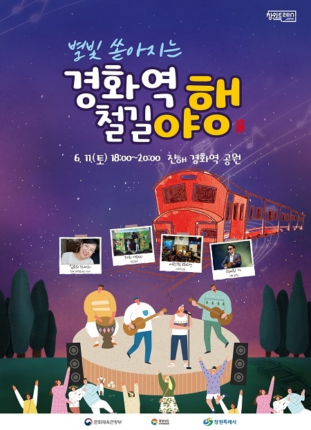 행사 내용은 △김추리 문화해설사가 전하는 진해 근대역사 이야기 △아동 인형극 △인디밴드 ‘어쿠스틱 브라더스’, 가수 구태진의 통기타 공연 △별빛 쏟아지는 경화역 철길에서 즐기는 포토존 이벤트 등으로 다채롭게 꾸며진다.