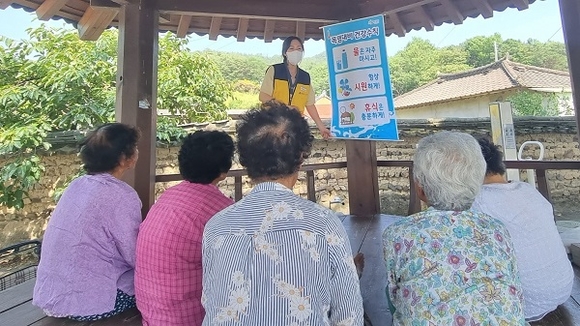 방문건강관리 전문인력은 안부 전화 및 문자를 통해 건강취약계층의 건강상태를 지속적으로 확인하고, 마을회관과 대상자 가정을 방문하여 폭염 대비 물품 배부와 여름철 건강관리수칙, 온열질환 응급조치법에 대해 교육한다.