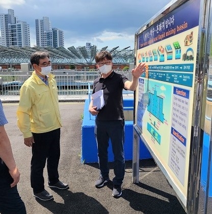 박재현 낙동강유역환경청장이 21일 부산 화명정수장을 방문해 녹조 대응상황 및 수돗물 안전을 확인하며 “조류경보 관심 단계가 발령됨에 따라 관계기관의 총력대응이 필요한 시기인 만큼 직원들에게 조류경보 단계별로 필요한 조치를 신속히 실시하여 안전한 수돗물 공급에 최선을 다해 줄 것”을 당부했다. (사진=낙동강청 제공)