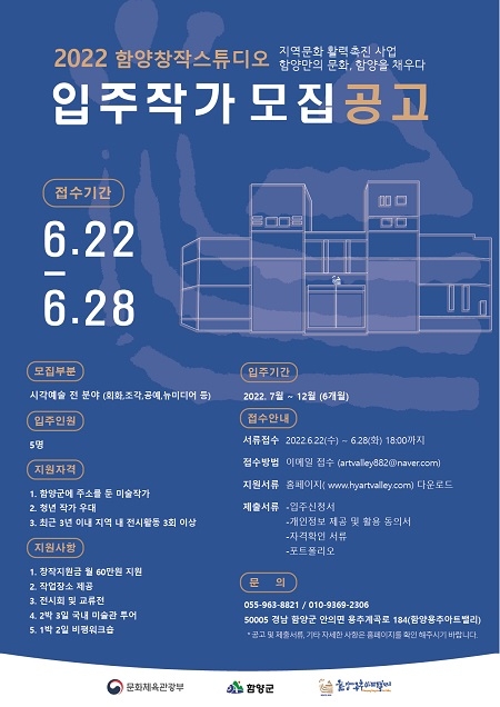 이번 입주작가 모집은 함양군이 문화체육관광부의 2022년 지역문화 활력촉진 지원사업 공모에 선정돼 추진하는 사업으로, 예술가에게 일정한 작업 공간 제공하고 커뮤니티 프로그램 및 전시 지원을 통해 작가의 창작활동을 활성화하고 지역사회와 함께하는 다양한 프로그램을 통해 지역 예술시장에 활력을 불어넣기 위함이다.