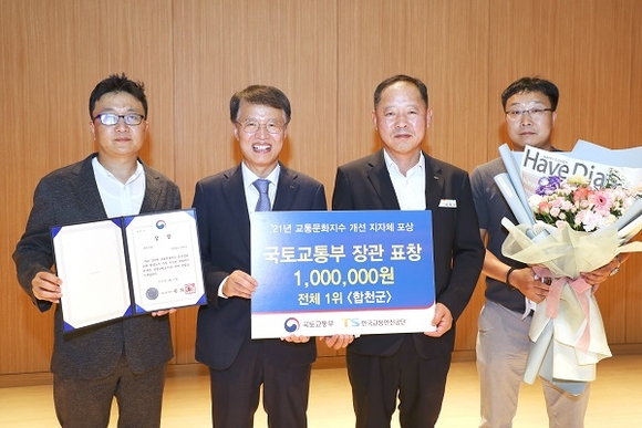 경남 합천군은 지난 27일 한국교통안전공단 김천 본사에서 '2021년 교통문화지수' 개선 부문 국토교통부 장관상을 수상했다고 28일 밝혔다.
