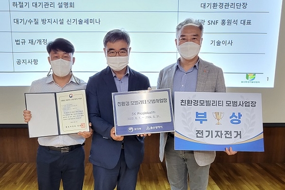 SK Picglobal은 사내 업무용 운송수단에 전기차 및 전기오토바이, 자전거를 적극 활용한 것에 대해 높은 평가를 받았다. 업무용 승용차의 60%, 업무용 오토바이의 30%를 전기차 및 전기오토바이로 운영중이며, 사내 자전거 이용 활성화를 위해 공용 자전거 46대를 배치하고 전용 보관대 및 수리소(8대), 샤워실(7개) 등의 편의시설을 운영중이다.