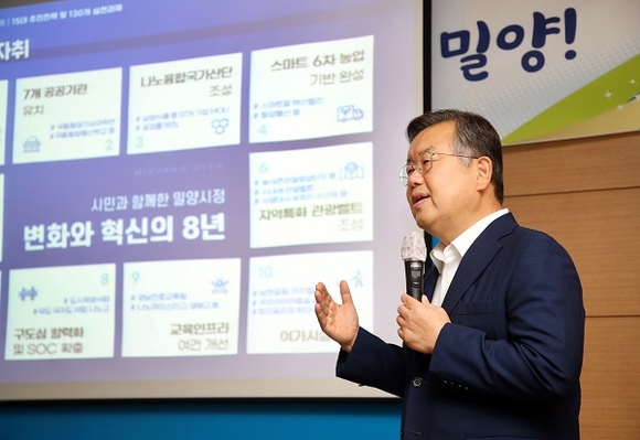 시는 다가오는 민선8기에는 급변하는 대외환경과 날로 어려워지는 경제여건에 대응하기 위해 보다 유연하고 혁신적인 시정을 펼쳐 시민의 삶의 질이 향상되고, 미래세대에 희망을 줄 수 있는 '영남권 허브도시 밀양' 건설에 전력을 다하겠다는 방침을 밝혔다.