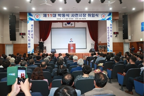 민선 8기 박동식 사천시장 취임식이 1일 시청 2층 대강당에서 열렸다.