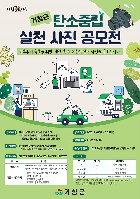 경남 거창군이 오는 29일까지 전 군민을 대상으로 탄소중립 실천 사진 공모전을 연다.