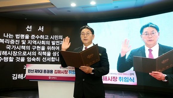 홍 시장은 지난 1일 취임식 때 들어온 취임 축하 화분과 화환 등 200여개를 되팔아 7일 (재)김해시미래인재장학재단에 기탁했다.