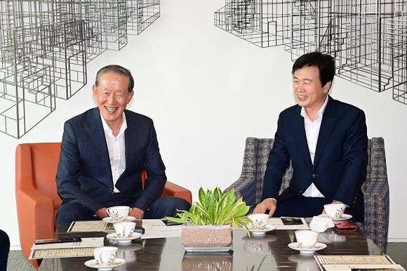 조규일 진주시장은 11일 허창수 전국경제인연합회장을 만나 진주지역 발전을 위한 간담의 시간을 가졌다. 이 자리에는 전경련 권태신 상근부회장과 배상근 총괄전무, 김봉만 국제본부장도 배석했다.