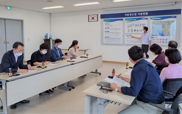 이날 소속 의원들은 석동정수장 시설 내 13단계의 정수처리 과정을 살펴봤다. 특히 이번 유충이 발견된 활성탄여과지, 급속여과지, 침전지와 송수펌프실 등을 꼼꼼히 확인하며 이들 시설이 이물질을 제대로 걸러내고 있는지를 자세히 점검했다.