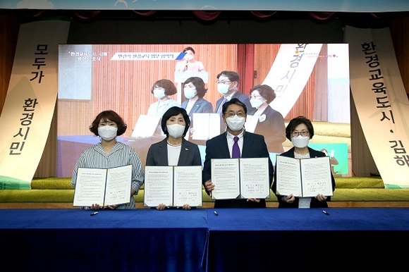 이 자리에서 김해시, 교육지원청, 환경단체 대표는 '모두가 환경시민, 환경교육도시 김해'를 위해 공동으로 협력하고 노력할 것을 선포하고 아울러 민·관·학은 다양한 환경교육 사업과 행사를 공동 추진하기 위한 환경교육 활성화 업무협약을 체결했다.