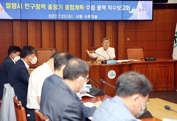 시는 이를 위해 지난 20일 시청 소회의실에서 박일호 시장과 관계부서장 20여 명, 용역 수행기관이 참석한 가운데 '인구정책 중장기 종합계획' 수립을 위한 용역 착수보고회를 가졌다.