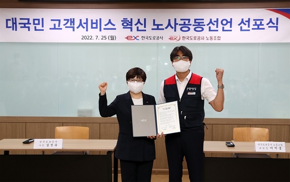 한국도로공사와 공사 노동조합은 25일 노조 창립 35주년을 맞아 '대국민서비스 혁신 노사공동선언 선포식'을 가졌다.