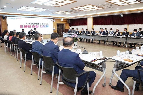 이날 간담회는 강용범 도의회 부의장, 박준 기획행정위원장, 박해영 건설소방위원장 등 19명의 도의원과 홍남표 시장을 비롯한 12명의 간부공무원들이 함께 참석해 시의 주요 현안 사업의 추진사항과 애로사항 등을 공유하고 도비 확보 방안에 대해 논의했다.