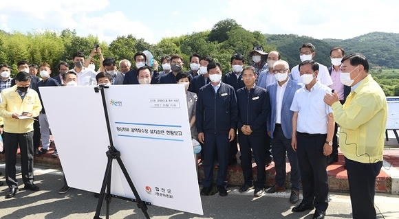 현장설명에 앞서 합천창녕보 전망대에서 이루어진 사업설명회는 도의회 의원, 도 기후환경산림국과 지자체 관계자 등 40여명이 참석해 한국수자원공사로부터 사업 기본계획에 대해 청취하는 시간을 가졌다.