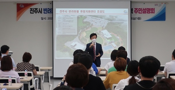 경남 진주시는 지난 26일 농업기술센터에서 조규일 진주시장, 시민, 동물보호봉사단체 회원 등 80여 명이 참석한 가운데 '반려동물 종합 지원센터 건립' 기본계획 수립을 위한 최종 주민설명회를 가졌다.