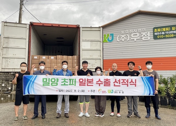 경남 밀양시는 2일 상동면 농업회사법인 ㈜우정에서 초피 수출농가, 수출업체, 시 직원 등 8명이 참석한 가운데 일본으로 초피를 수출하는 선적식을 가졌다.