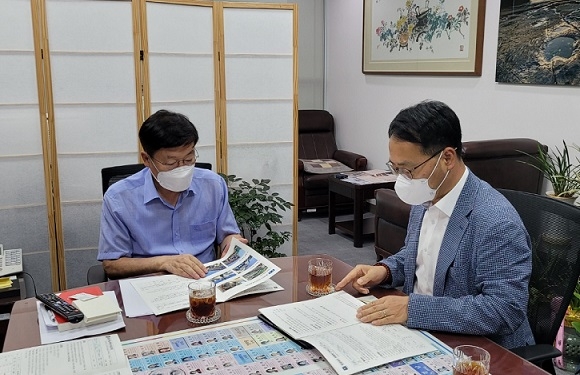정점식 의원에게는 ▲굴껍데기 자원화 전처리 시설 지원 ▲굴껍데기 자원화 시설 구축(계속)을 건의했고, 박대출 의원과의 만남에서는 ▲그린 스타트업 타운 조성 ▲천연소재 전주기 표준화 지원허브 구축에 대한 협조를 요청했다.