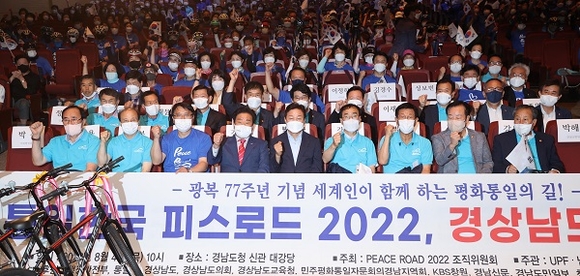 '신통일한국 피스로드 2022 경상남도 통일대장정'이 한반도의 통일 실현과 세계평화의 증진에 기여하고자 4일 도청 대강당 및 광장에서 개최됐다.