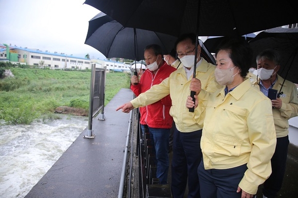 홍남표 창원시장은 11일 오후 김영선 국회의원과 함께 여름철 집중호우에 대비해 재해예방시설인 의창구 팔용배수장 등을 점검했다.