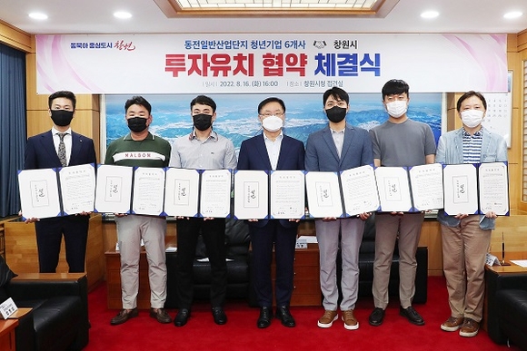 경남 창원시는 16일 오후 4시 접견실에서 동전일반산단에 입주예정인 청년기업 6개사와 투자금액 총 389억 원, 신규 고용 136명 규모의 투자협약을 체결했다고 밝혔다.
