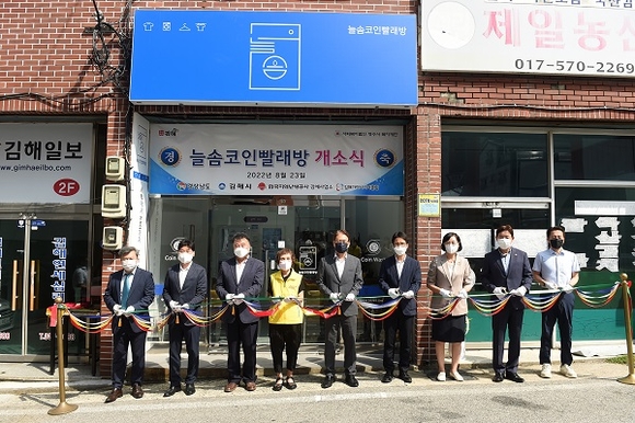 경남 김해시는 23일 노인에 일자리를 제공하는 '늘솜 코인 빨래방'을 개소했다고 밝혔다.