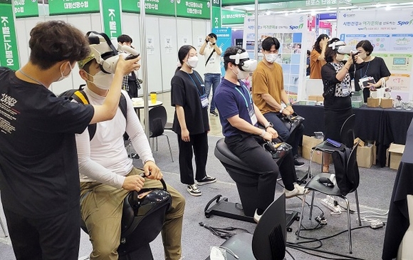 한국마사회 부산경남경마공원이 지난 25일부터 27일까지 벡스코에서 열린 '2022 글로벌 헬스케어 위크'에 설치한 ICT(정보통신기술) 경마·승마 체험관이 가족단위 관중이 장사진을 이루는 등 인기를 끌었다.
