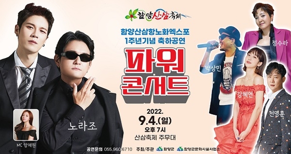 함양군 문화시설사업소가 제17회 함양산삼축제 기간 중인 다음달 4일 오후 7시 산삼축제 주무대에서 '파워콘서트'를 개최한다.