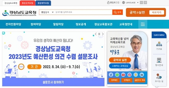 경남도교육청이 내년도 예산편성에 앞서 학생·학부모 등 도민을 대상으로 9월 7일까지 설문조사를 진행한다.
