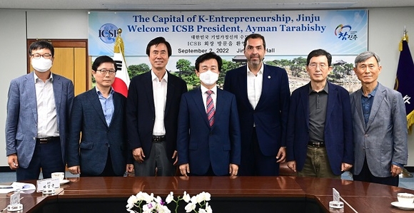 경남 진주시는 지난 2일 세계중소기업협의회(ICSB) 아이만 타라비쉬(Ayman Tarabishy) 회장과 김기찬 전임 회장, 경제·인문사회연구회 성경륭 전 이사장 등 세계중소기업협의회 주요 임원진이 K-기업가정신센터를 방문했다고 5일 밝혔다.