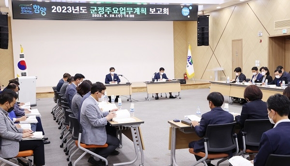 경남 함양군은 지난 28일 군청 대회의실에서 진병영 군수를 비롯해 부군수, 국장, 전 부서장, 주무담당 등 50여명이 참석한 가운데 내년도 군정주요업무계획 보고회를 가졌다.